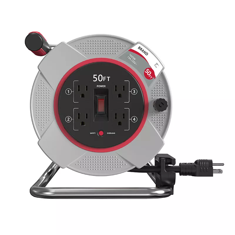 Главная > Продукты > Катушка для шнура > Пластиковая катушка для шнура > 4 розетки пластикового шнура 50 футов с защитой от перегрузки